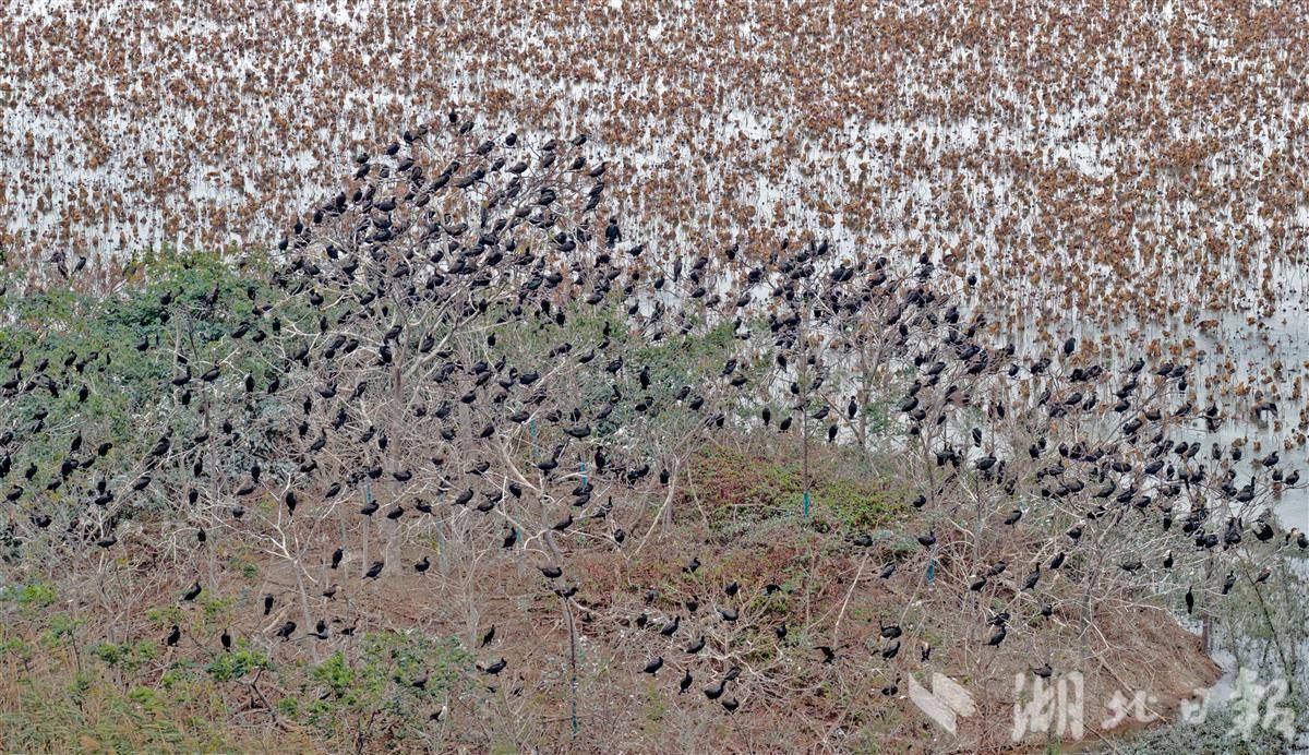 近年来,荆州岭拉高国家湿地公园加大生态保护投入。通过改善湖水水质、科学管理莲藕种植园、恢复植物芡实等水生鸟类,为鸟类创造了优良的栖息地。灵泻湖湿地已逐渐成为重要的湿地候鸟南北迁徙途中的“供电基地”。 (湖北日报记者刘树松、通讯员肖明提供)